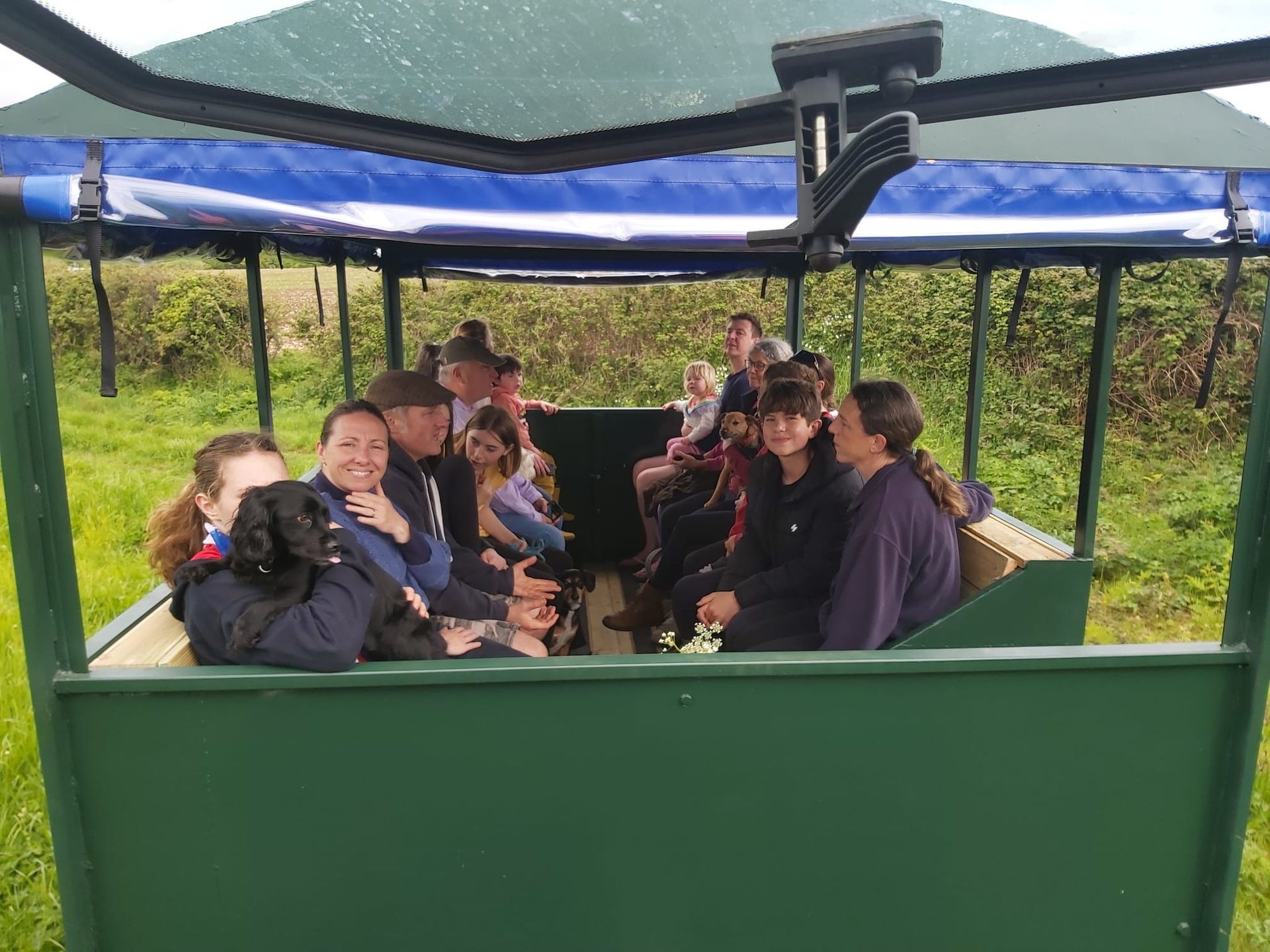 Our people carrier trailer is fully licensed and insured to take groups around the farm and if you are very local we could probably pick you up!